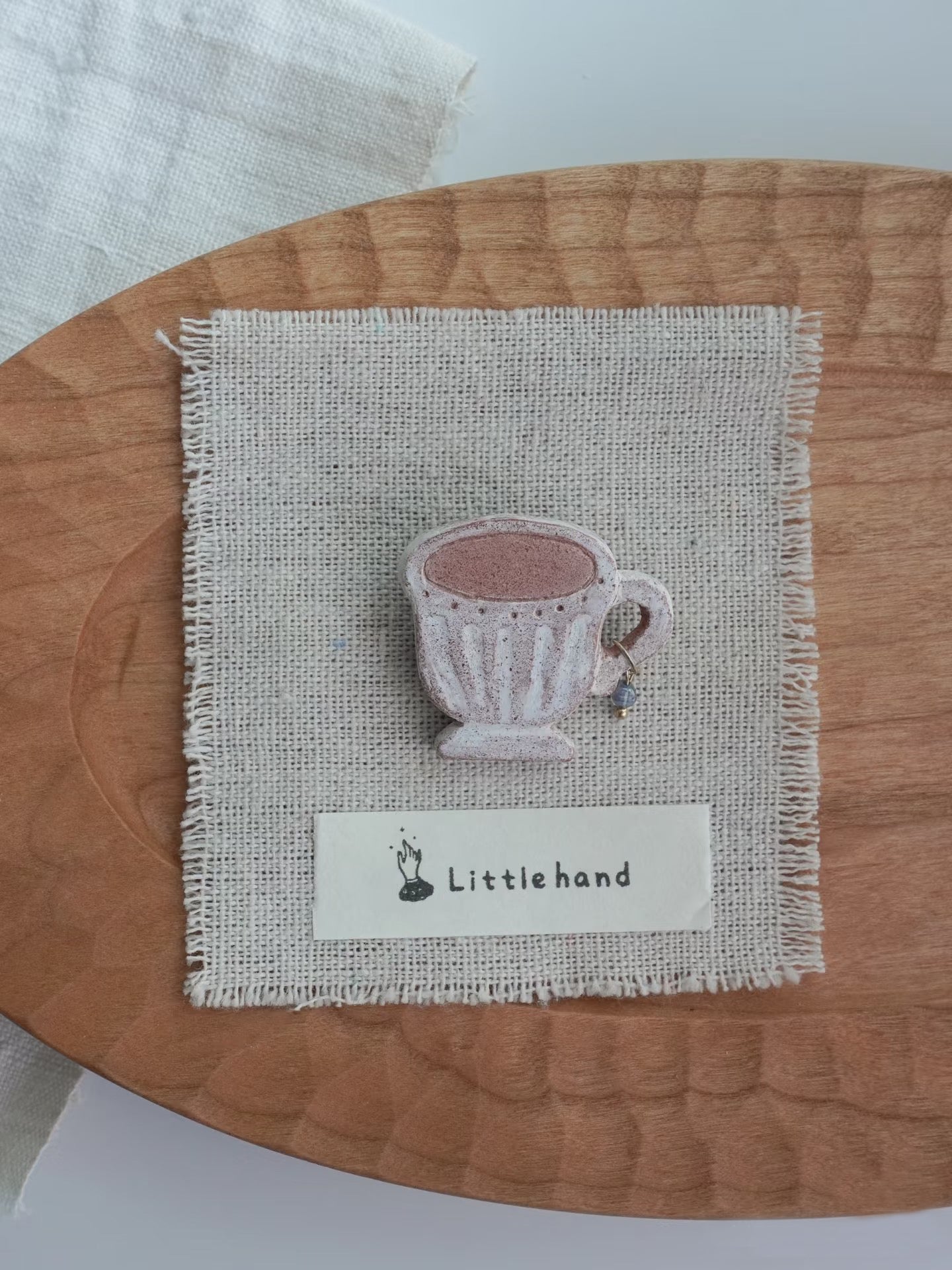 Little Hand Ceramic Coffee Mug Brooch Pin【Pink / Blue】